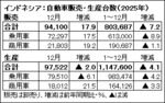インドネシア:25年の新車販売7%減、3年連続マイナス